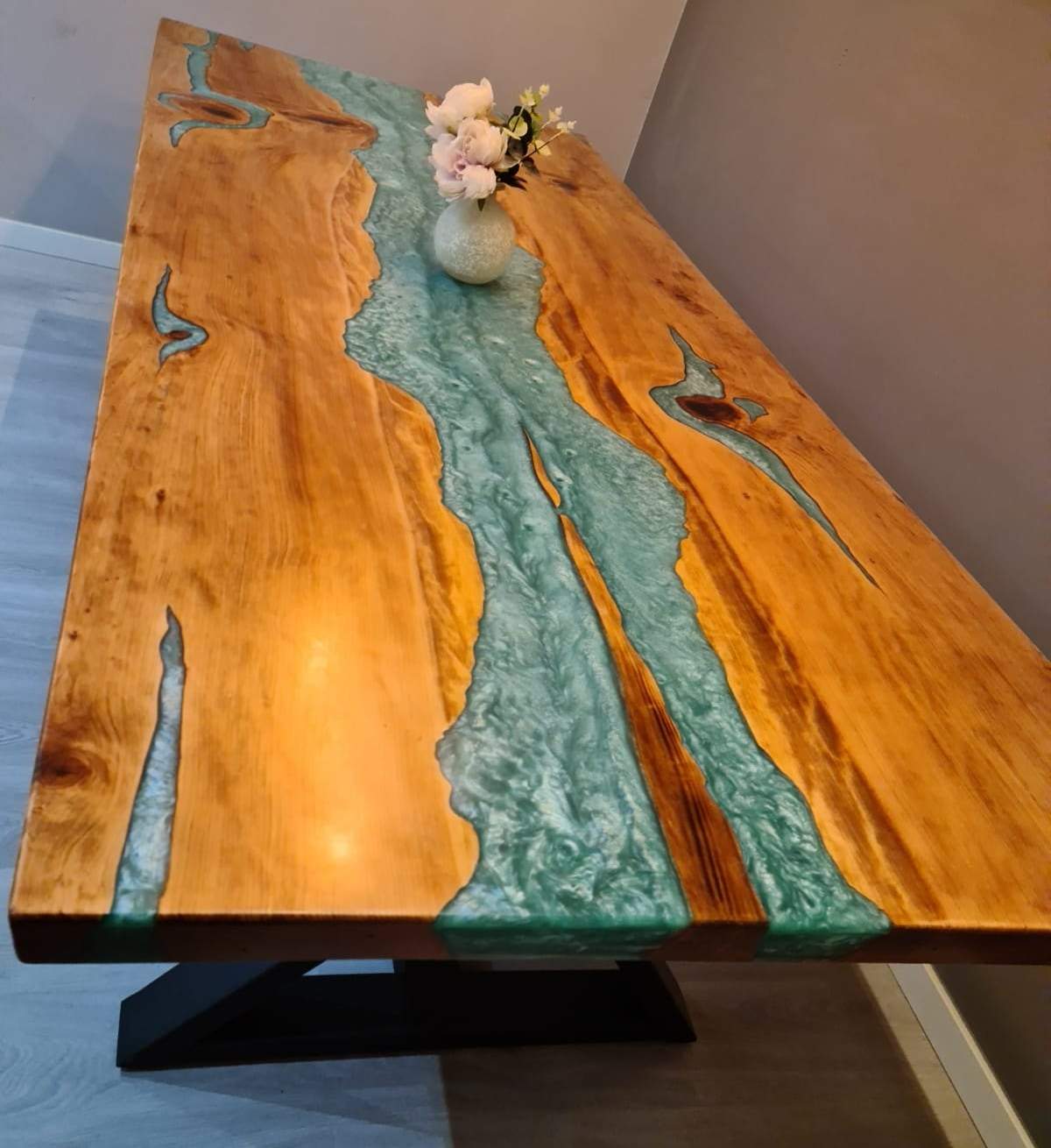 Nuestras mesas artesanales fabricadas con madera natural también se utilizan con frecuencia en talleres, comercios y restaurantes, la capa de resina epoxi aporta artículos de máxima calidad.